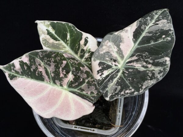 アロカシア ブラックベルベット 斑入り スポンサーリンク 2025.10.13 イベントで購入してから、植え替えもせず、そのままの容器で育ててます…笑 散り斑で、ほんのりピンクに色づいてかわいいです。 ピンク斑に見えますが、厳密に言うと白斑で、葉の裏の色が透けてピンクに見えるそうです。 グリーンベルベットは伸びてかなり大きくなりますが、ブラックベルベットはコンパクトで良い感じです。 Alocasia black velvet variegata