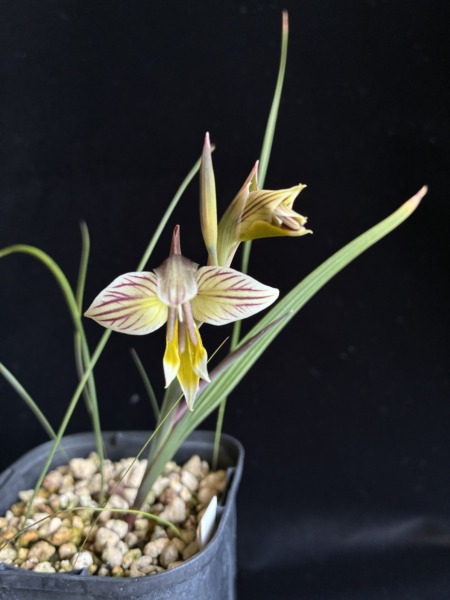 ヒルストゥス×ワテルメリエリ スポンサーリンク 2026.03.01 うーん、両親の悪いところばかりを引き継いでしまいました。 ピンクのベイン模様を狙いましたが、花は開きが悪いし、ベイン模様はほぼないし… まぁ交配はいつも上手くいくわけじゃないですよね。 Gladiolus hirsutus × watermeyeri 両親。ワテルメリエリの模様ってあまり遺伝しないのかな?ウイシアエの方が今のところ良さげ。 Gladiolus hirsutus Gladiolus watermeyeri