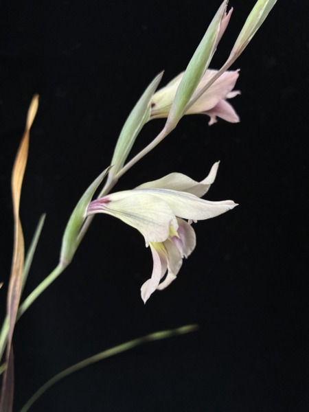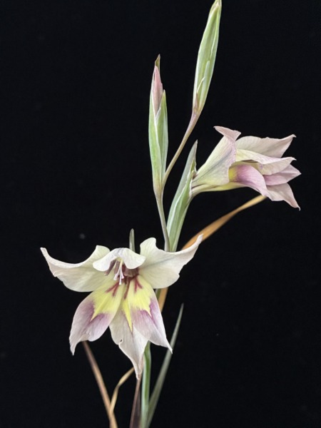 コンチェルト×オーキッドフロラス スポンサーリンク 2026.03.04 ニュアンスカラーでなかなかの美花です。花4cmくらいで、高さは30cmほどです。 なぜかブルーの線が花弁に入りました。オーキッドフロラスにあったっけ…?複雑な色合いで綺麗です。 オーキッドフロラスの花型にはならなかったんですが、独特の模様が入って良い感じです。非常に良い香りもあります。 Gladiolus ‘Concerto’ × orchidiflorus