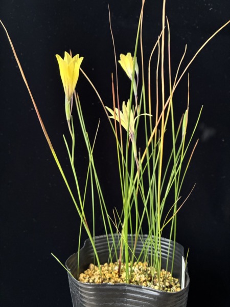 キトゥリヌス×グラシリス スポンサーリンク 2026.03.23 渋めの花色のグラシリスを親に使いました。 うーん、ほぼキトゥリヌスみたいな見た目に。 交配した意味はほぼないっていう…それならキトゥリヌスで良いかな… 違いはちょっと背が高くなったのと、花弁に斑点が入るのと、開花時期が早くなったくらい。 Gladiolus citrinus × gracilis